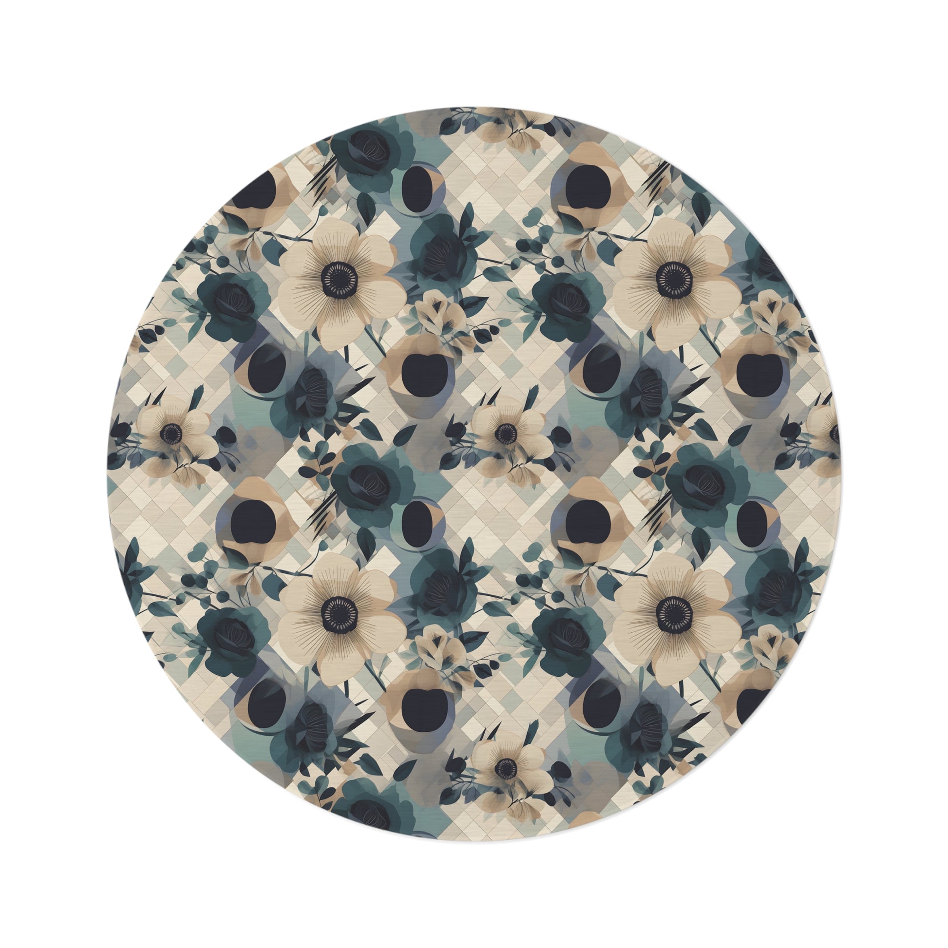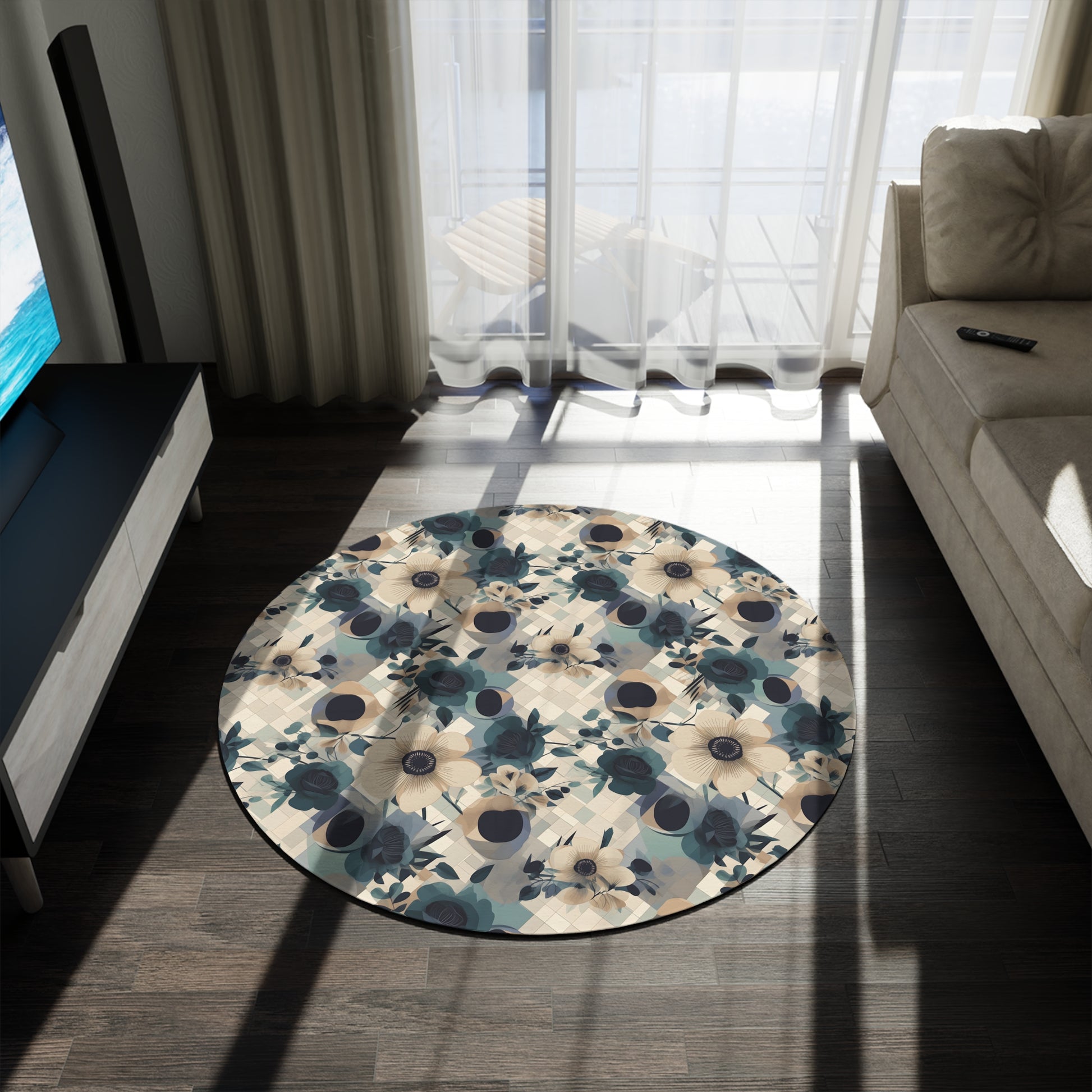 - Layer this round floral rug under a coffee table to anchor your living room.