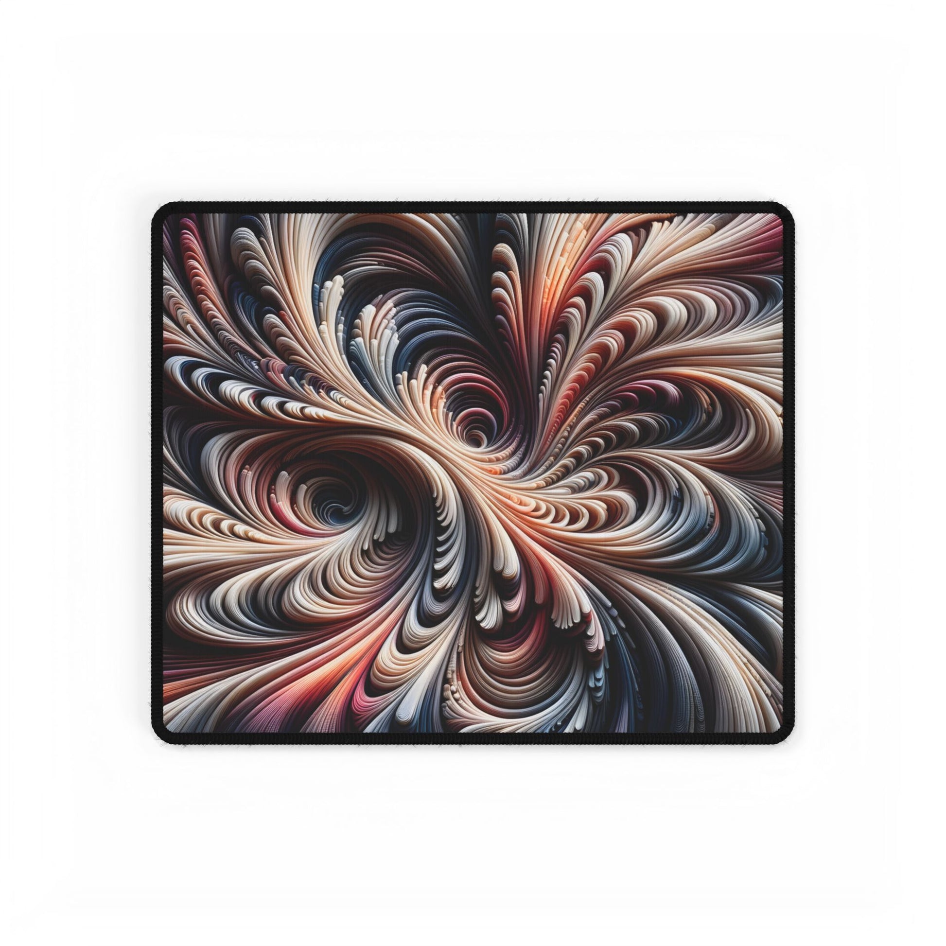 Transform your desk with this Abstract Art Desk Mat. Swirling fluid patterns in red, pink, and black add a sophisticated, modern touch to your workspace.