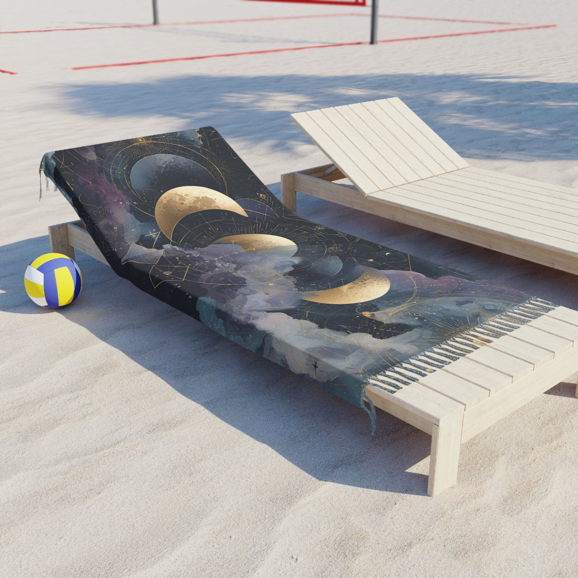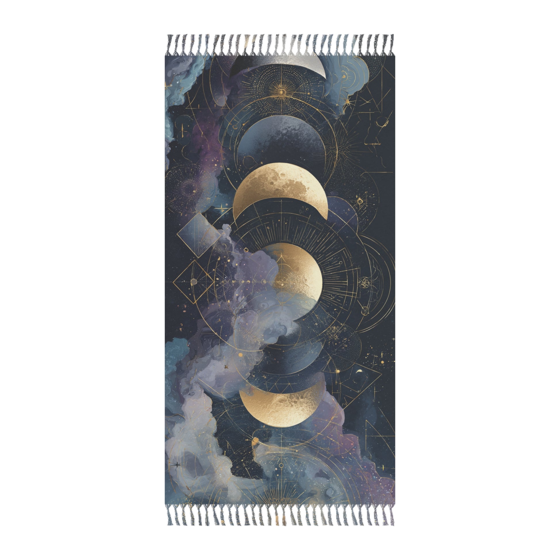 Boho Moon Phase Beach Towel, Astrology Decor, Crystal Beach Wrap, Meditation Blanket, Bohemian Gift for Beach Lovers