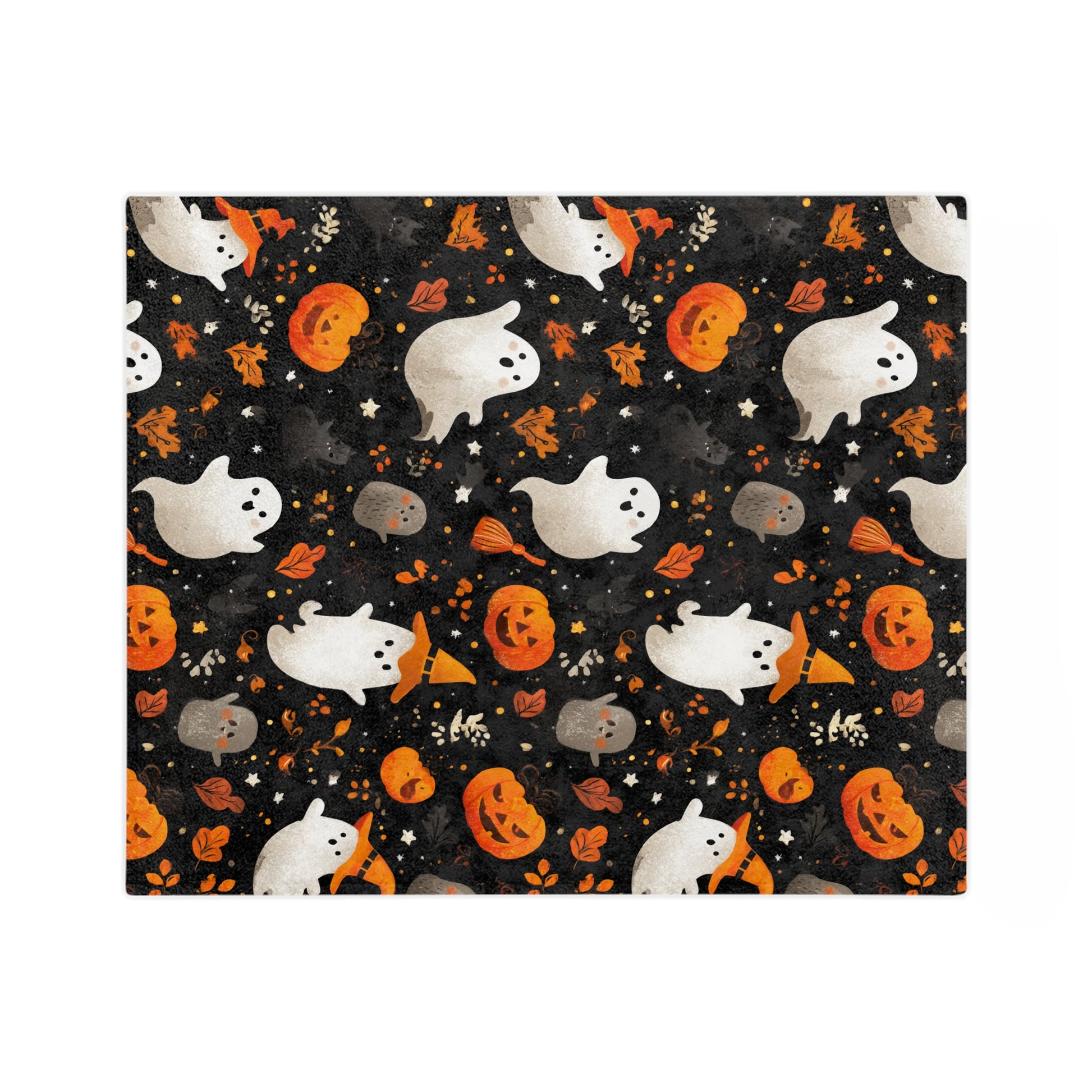 Snuggle into spooky season with a cozy Halloween throw blanket that’s soft, plush, and irresistibly cuddle-worthy. This velveteen microfiber Halloween throw drapes beautifully with a subtle velvety sheen, wrapping you in warmth for movie nights, reading nooks, and festive fall decor. The playful, not-too-scary design—friendly ghosts (some with orange witch hats), bright jack-o’-lanterns, whimsical gray critters, stars, and autumn leaves—pops against a deep, night-sky black background for instant Halloween vibes. Why you’ll love it: Comfort that hugs back, Eye-catching and cute, Styled to shine, Made to last, Easy care. Details: Available in three sizes, Material: 100% polyester velveteen microfiber. Best for: Halloween decor, couch cuddles, spooky movie nights, playful photo backdrops, and seasonal gifting.