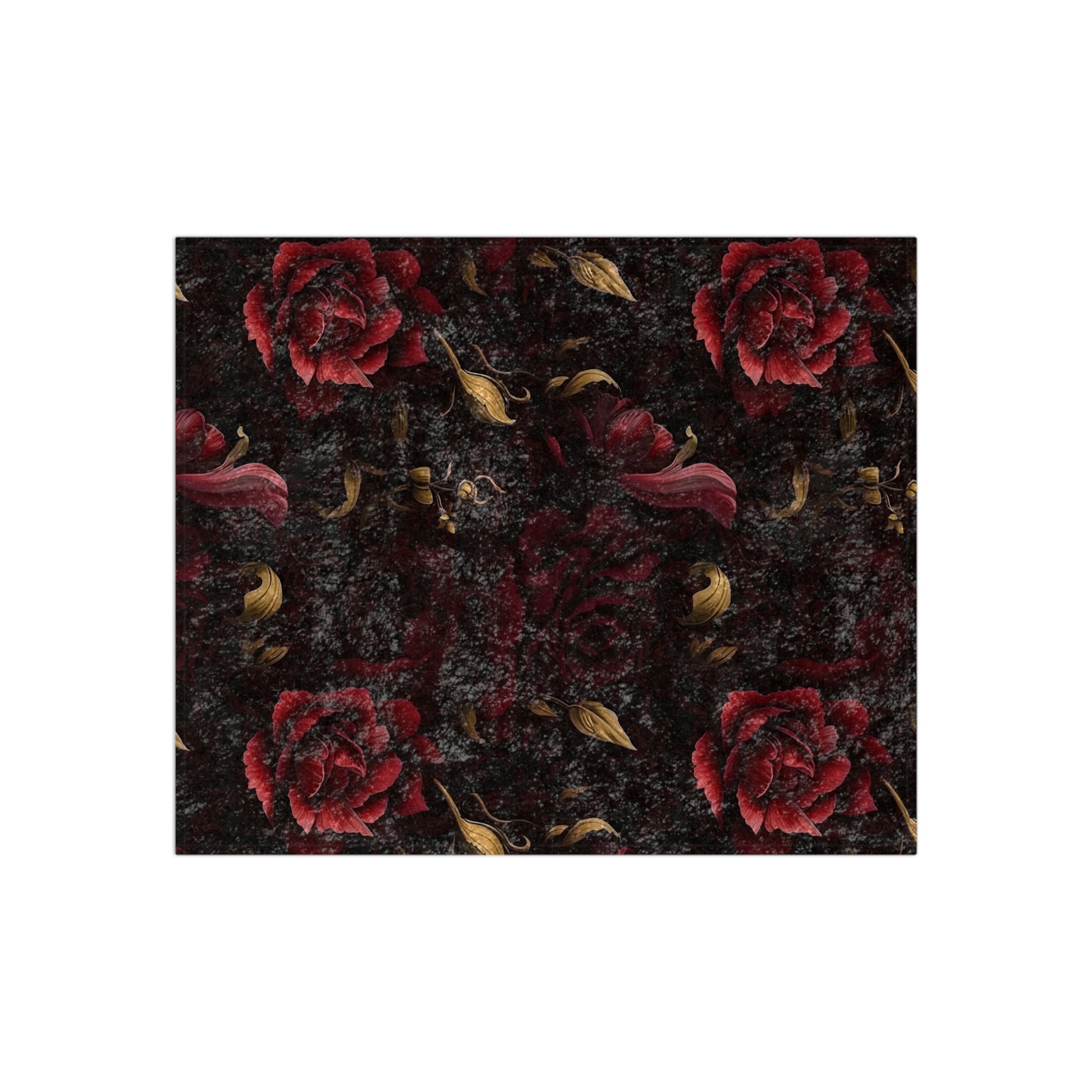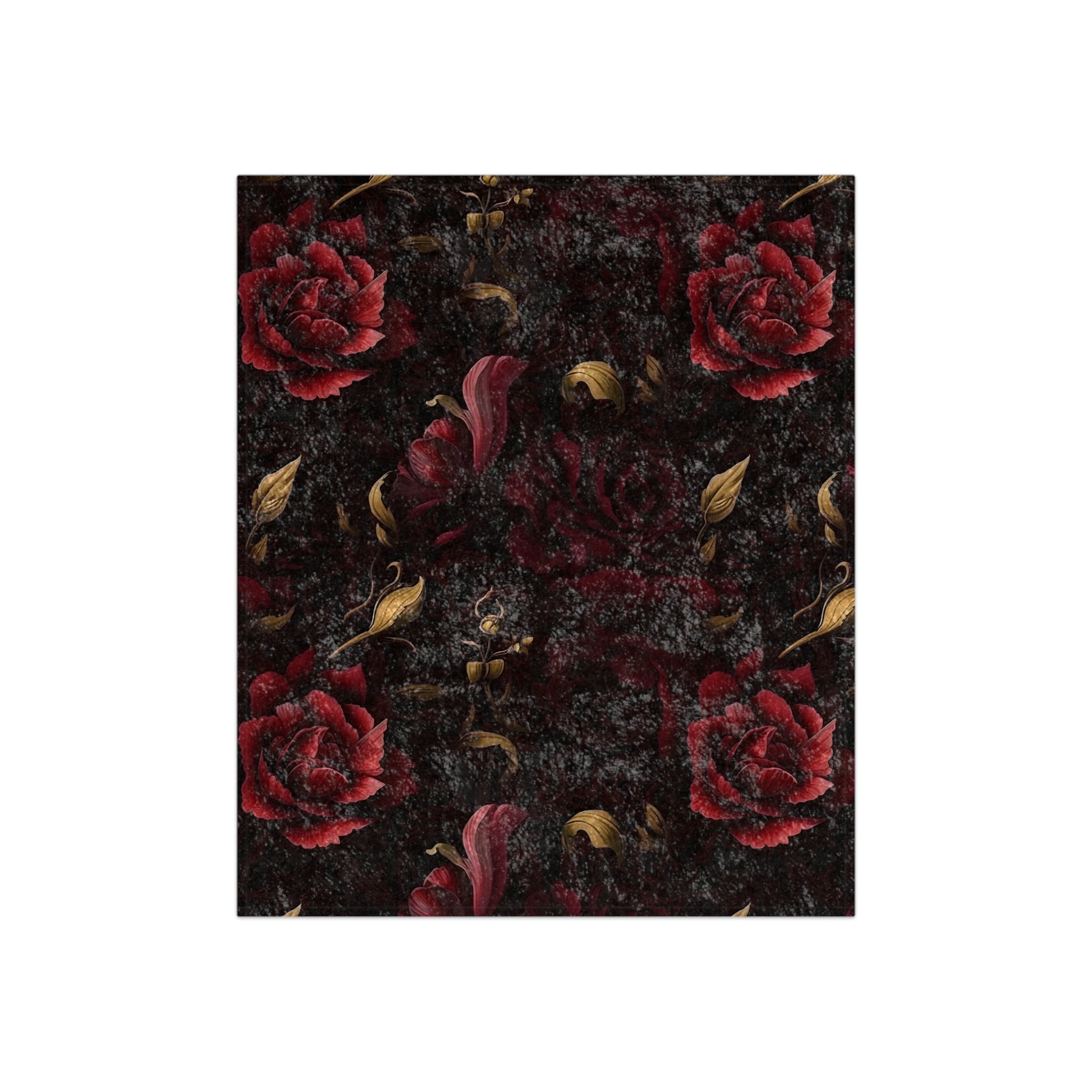 Dark Red Rose Pattern Crushed Velvet Blanket | Gothic Floral Throw