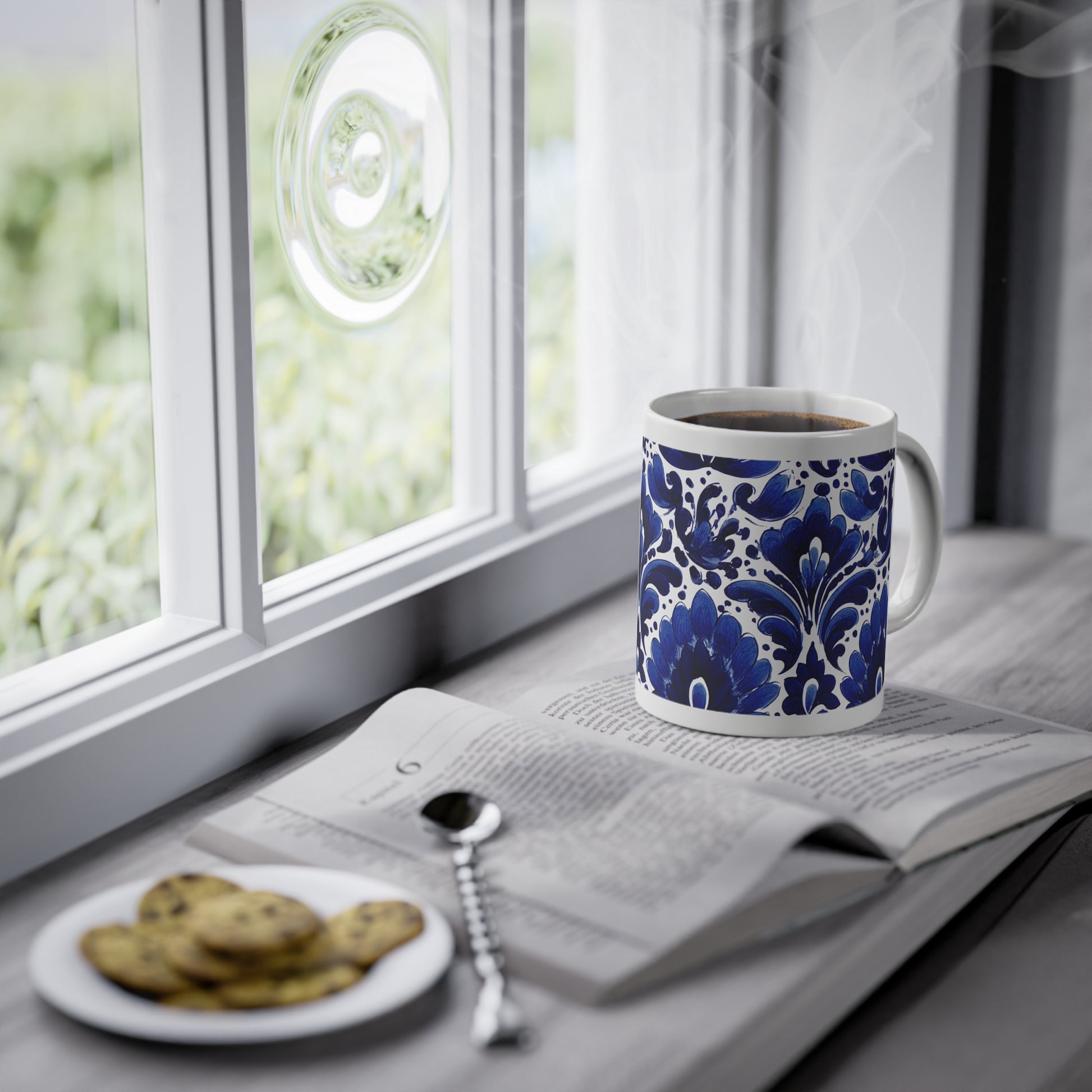 Elegant Floral Standard Mug, 11oz - Perfect for Home, Office, Gift, Coffee Lover, Blue Decor