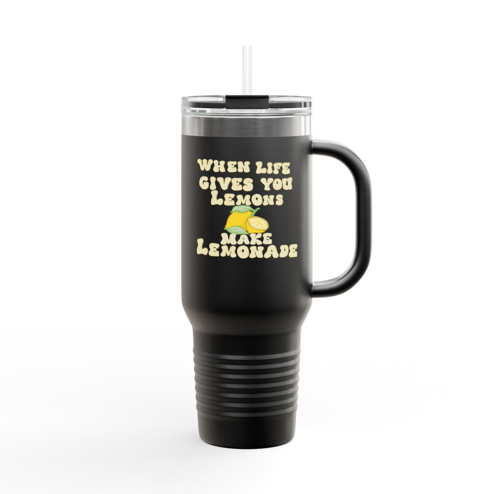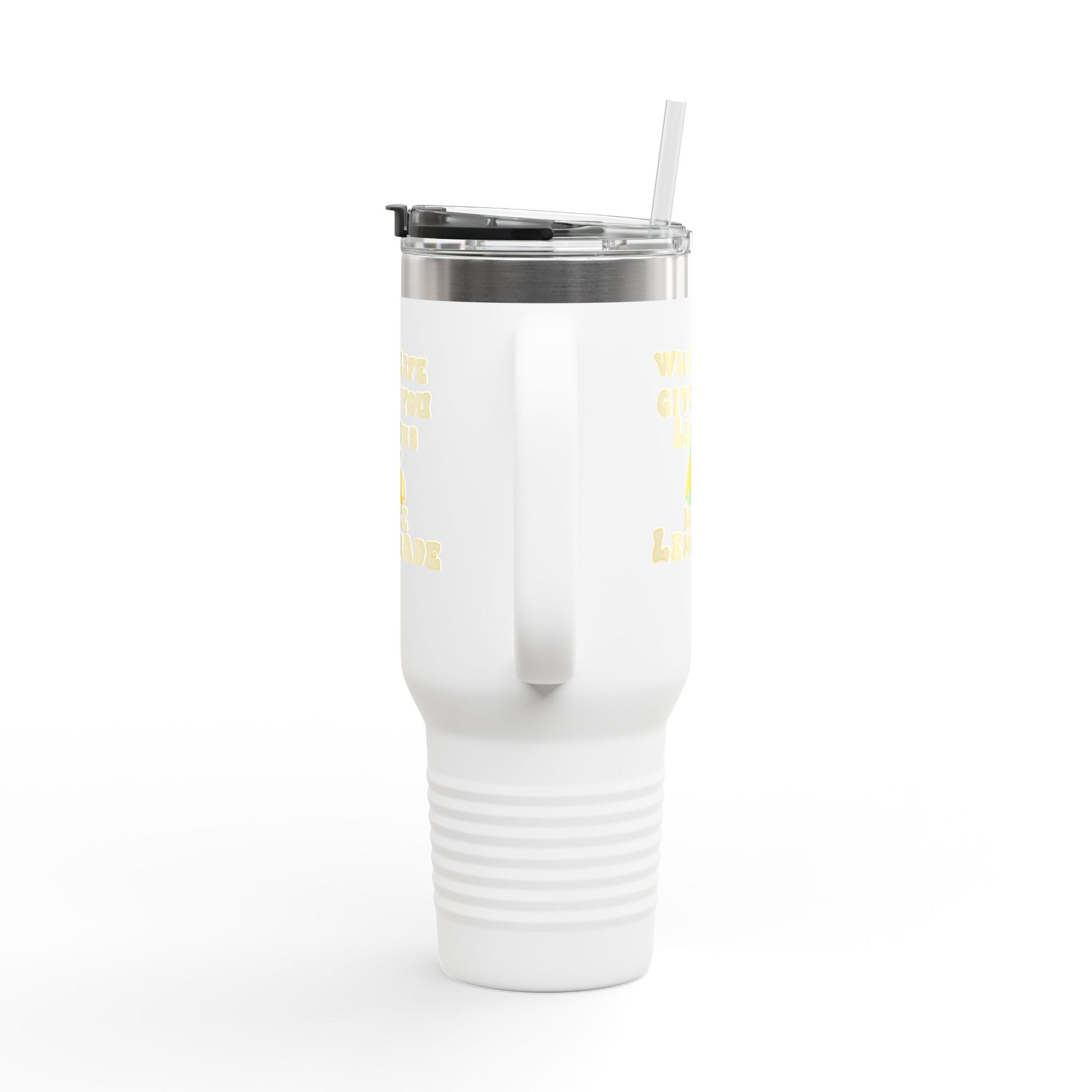 Take your drink anywhere with the 40oz Travel Mug with Straw. Keeps beverages hot or cold with double-wall insulation.