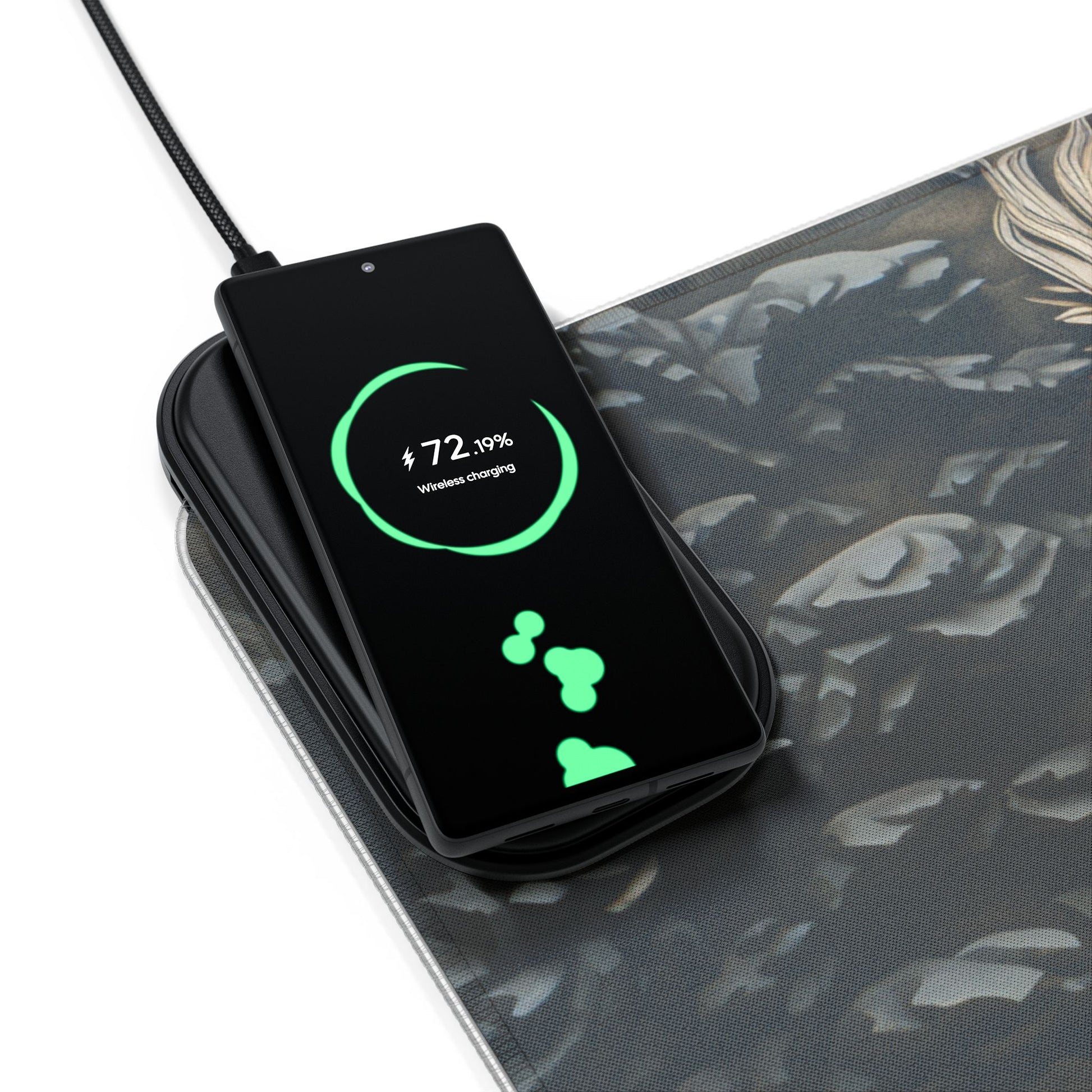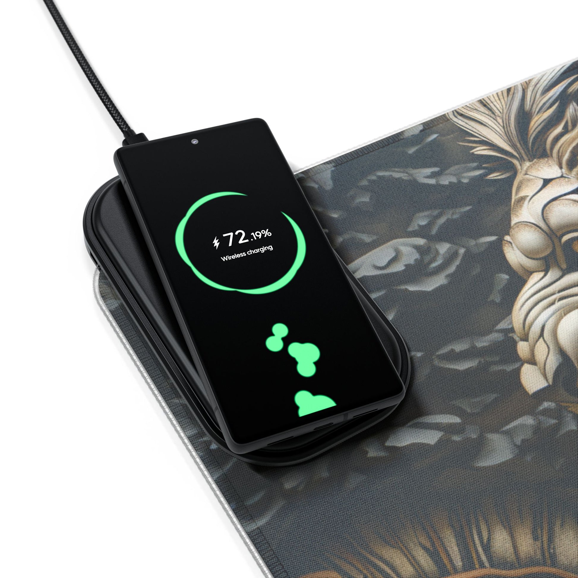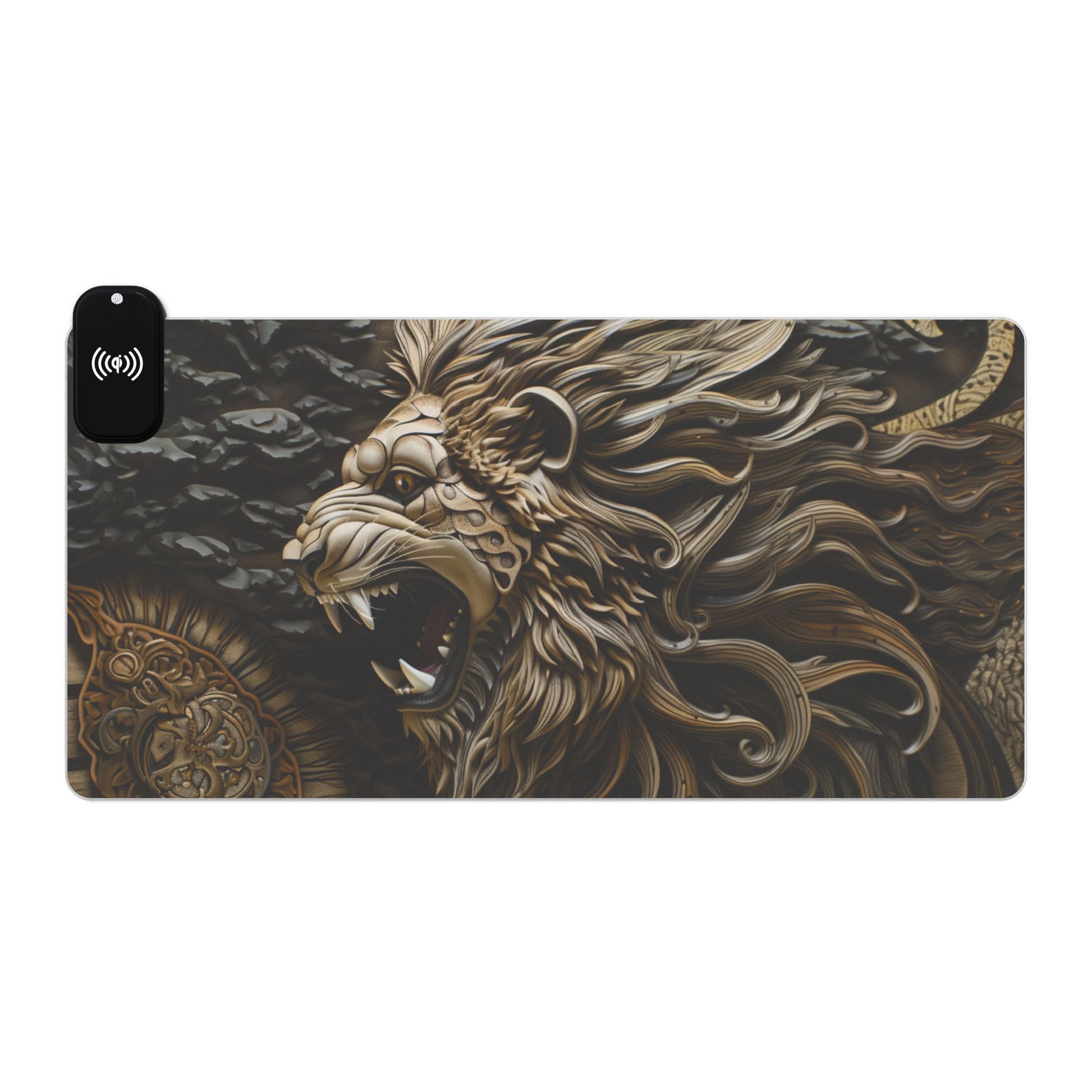 Lion Mandala RGB LED Gaming Mouse Pad with Wireless Charging