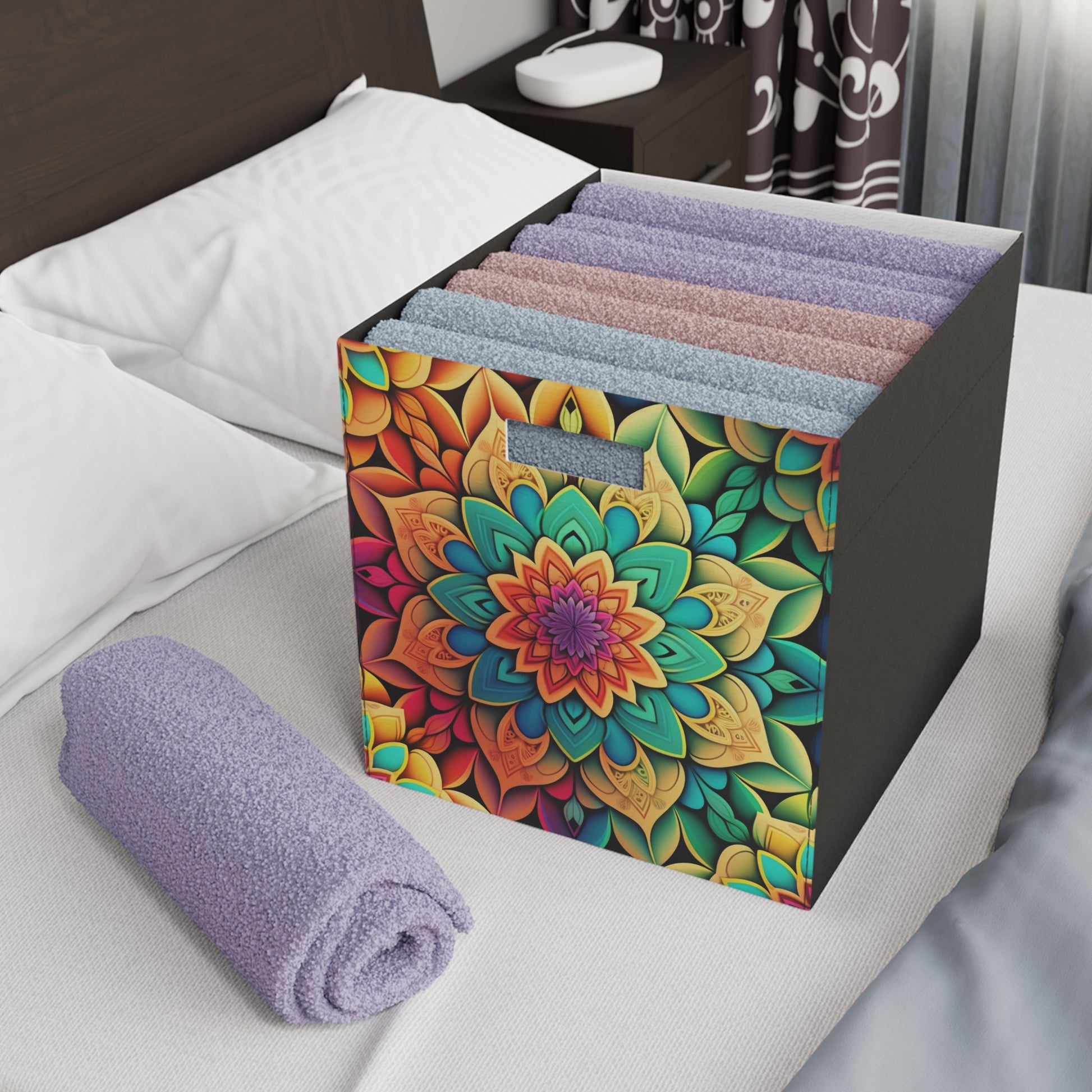 Find your center of organization with this Mandala Design Felt Storage Box. A beautiful mandala print adds a zen, artistic touch to your shelving.