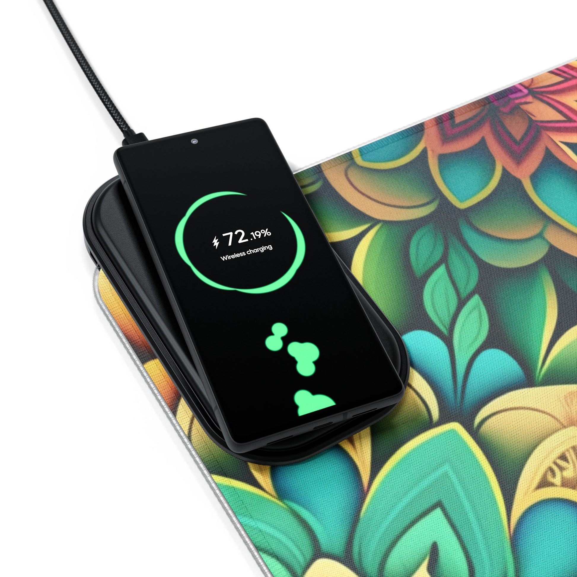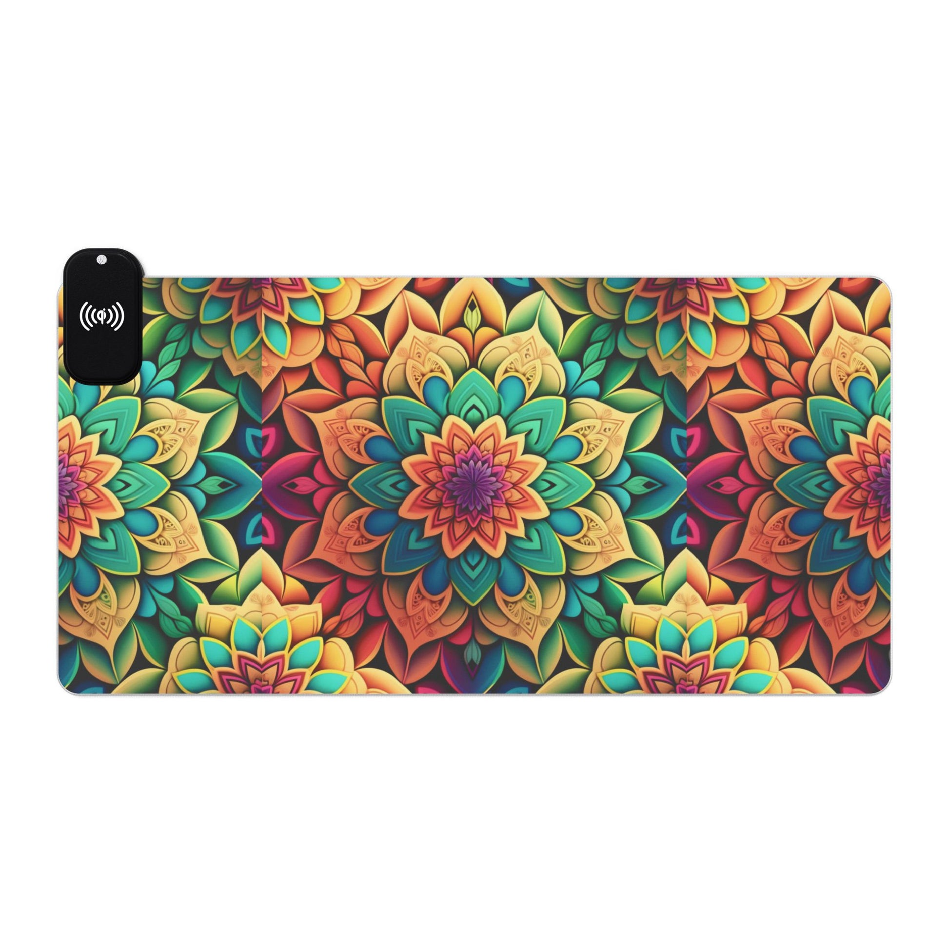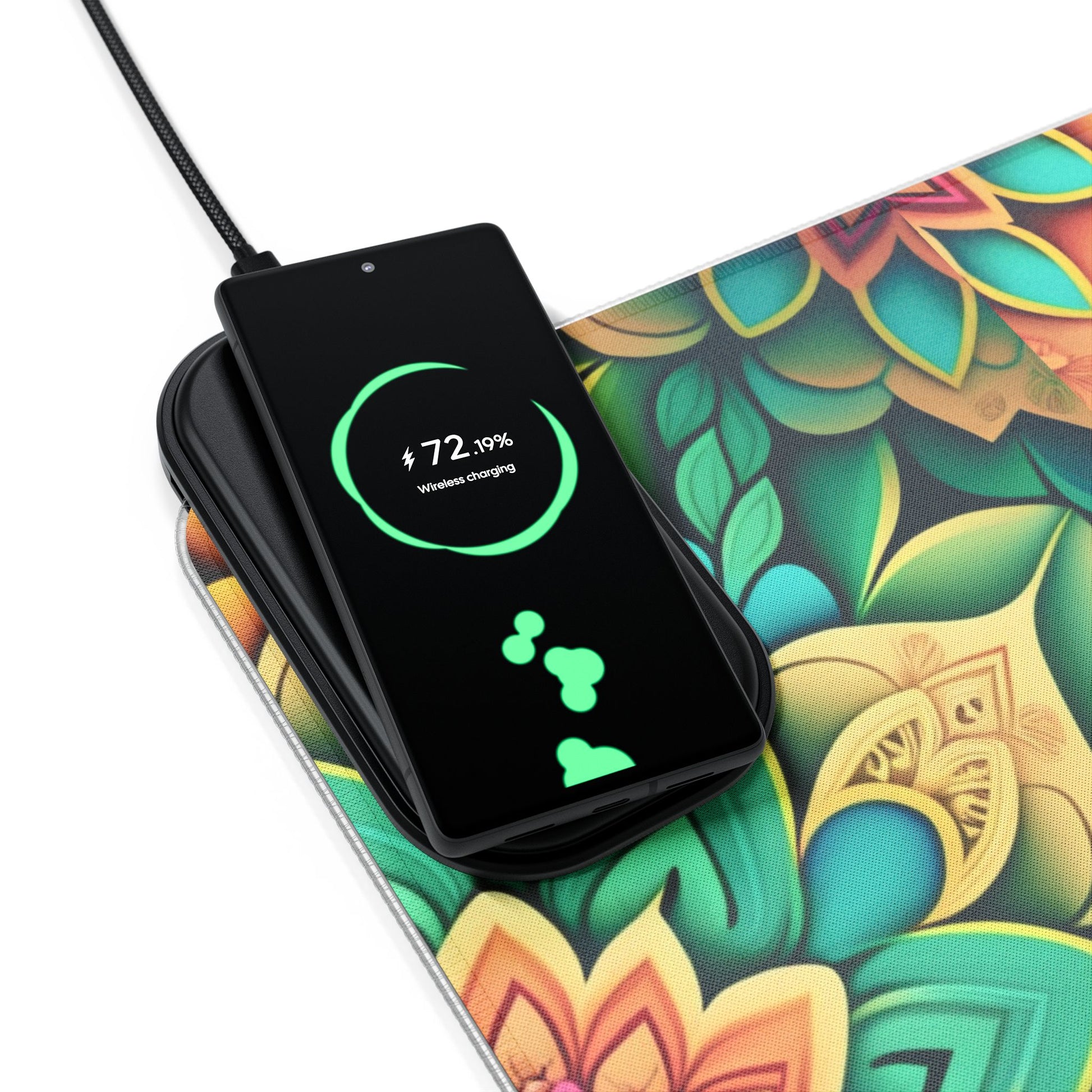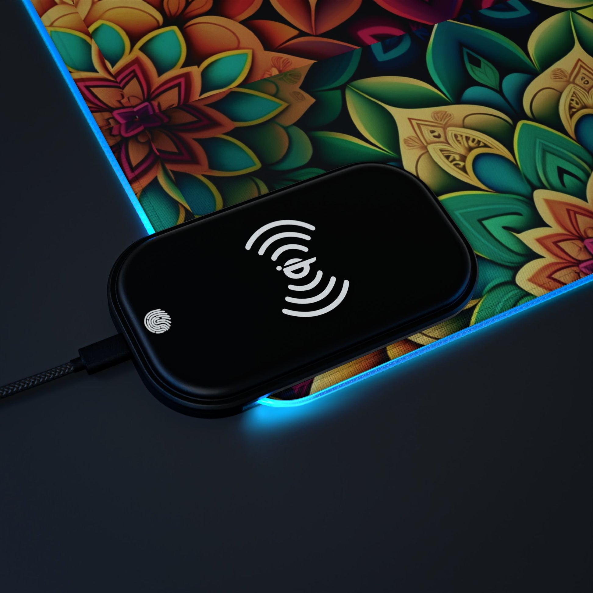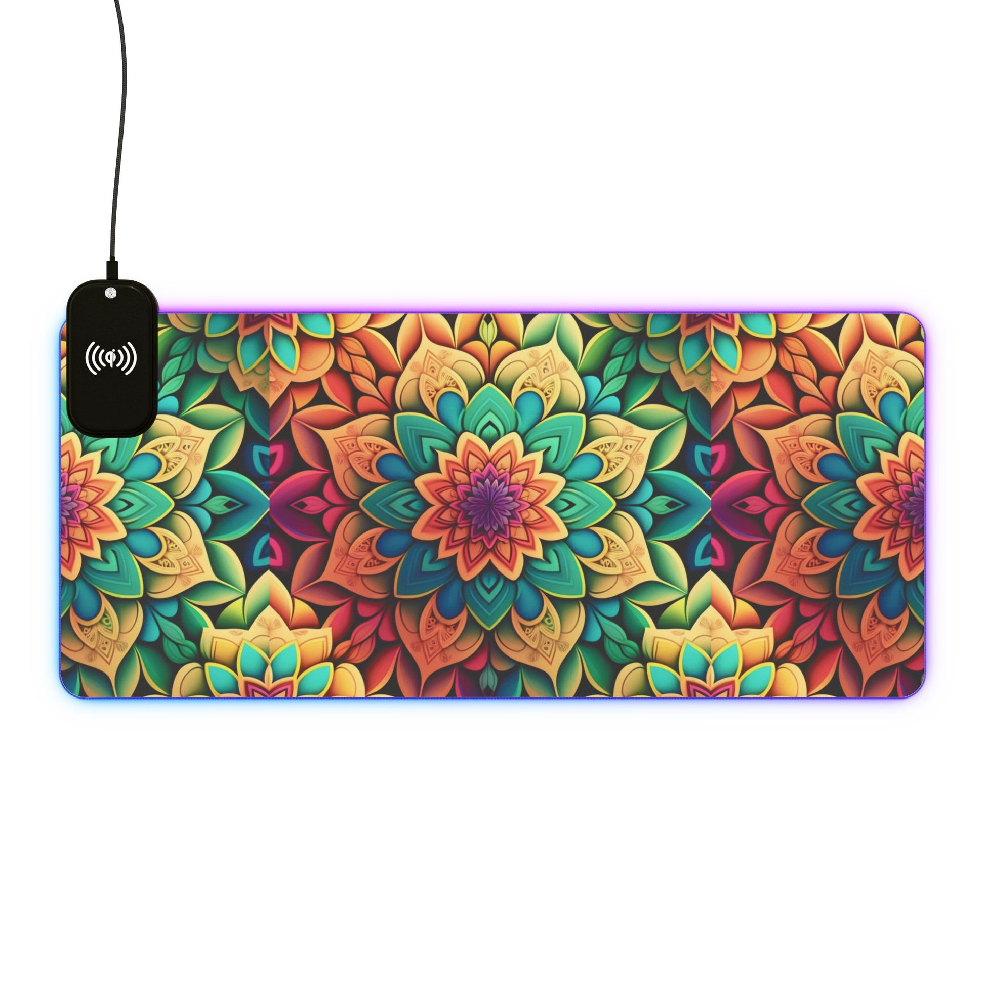 Mandala RGB Gaming Mouse Pad | Wireless Charging | Large Artistic Desk Mat