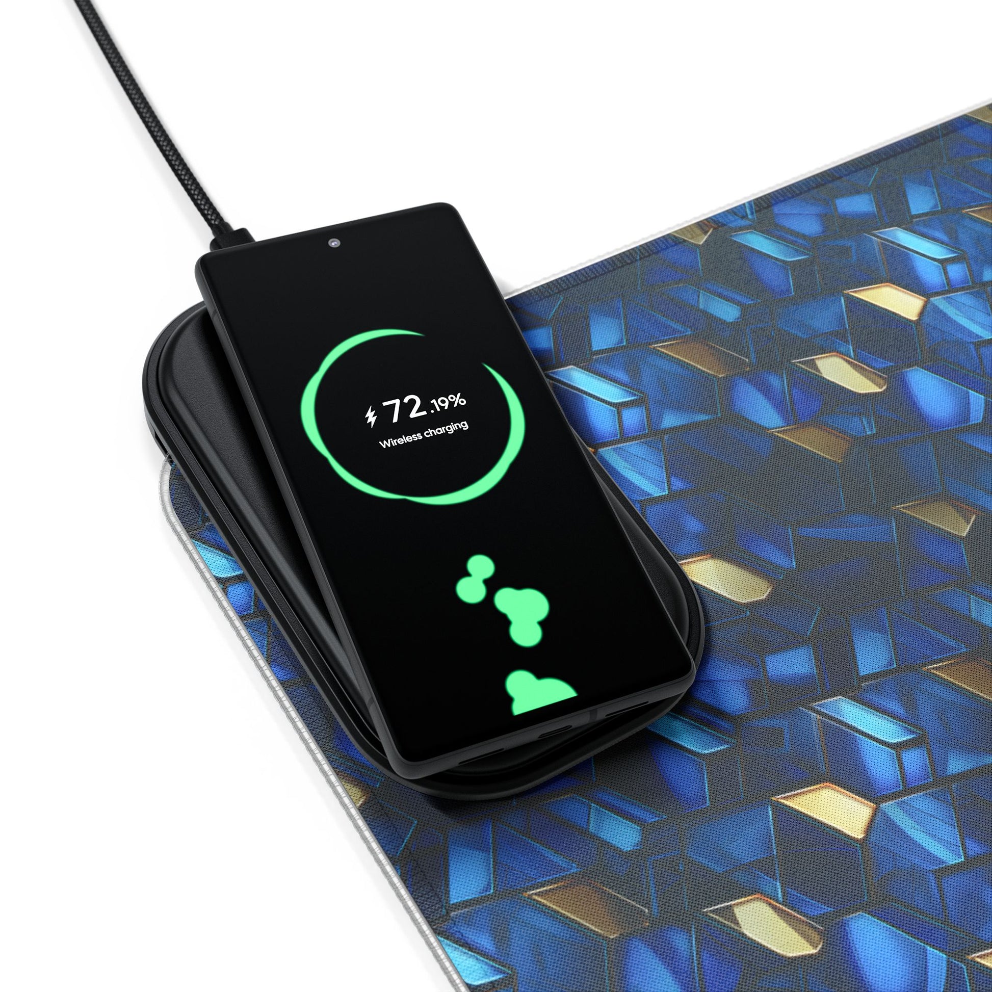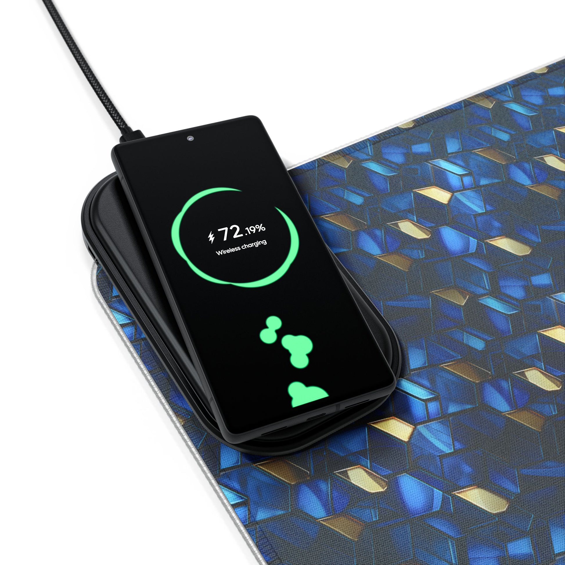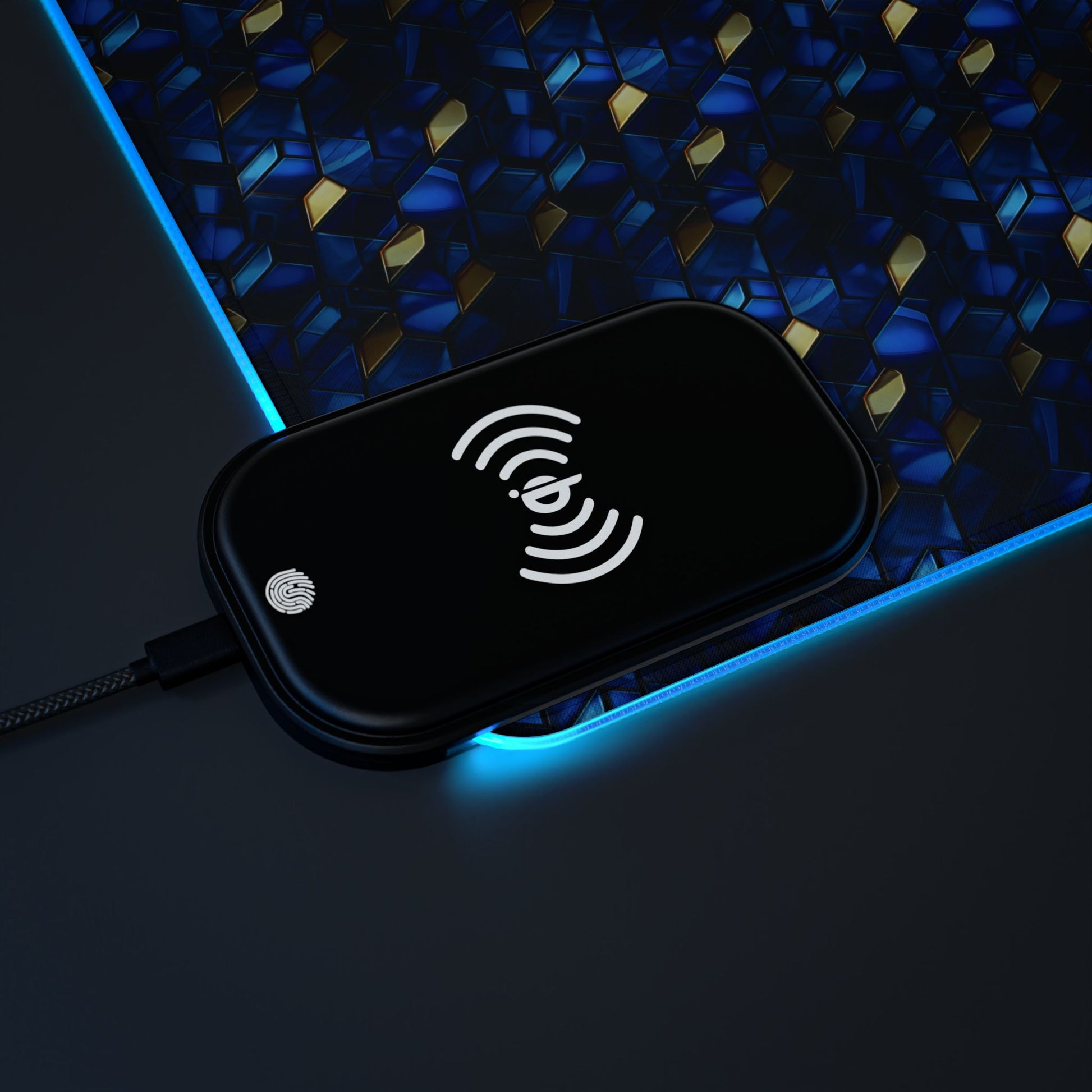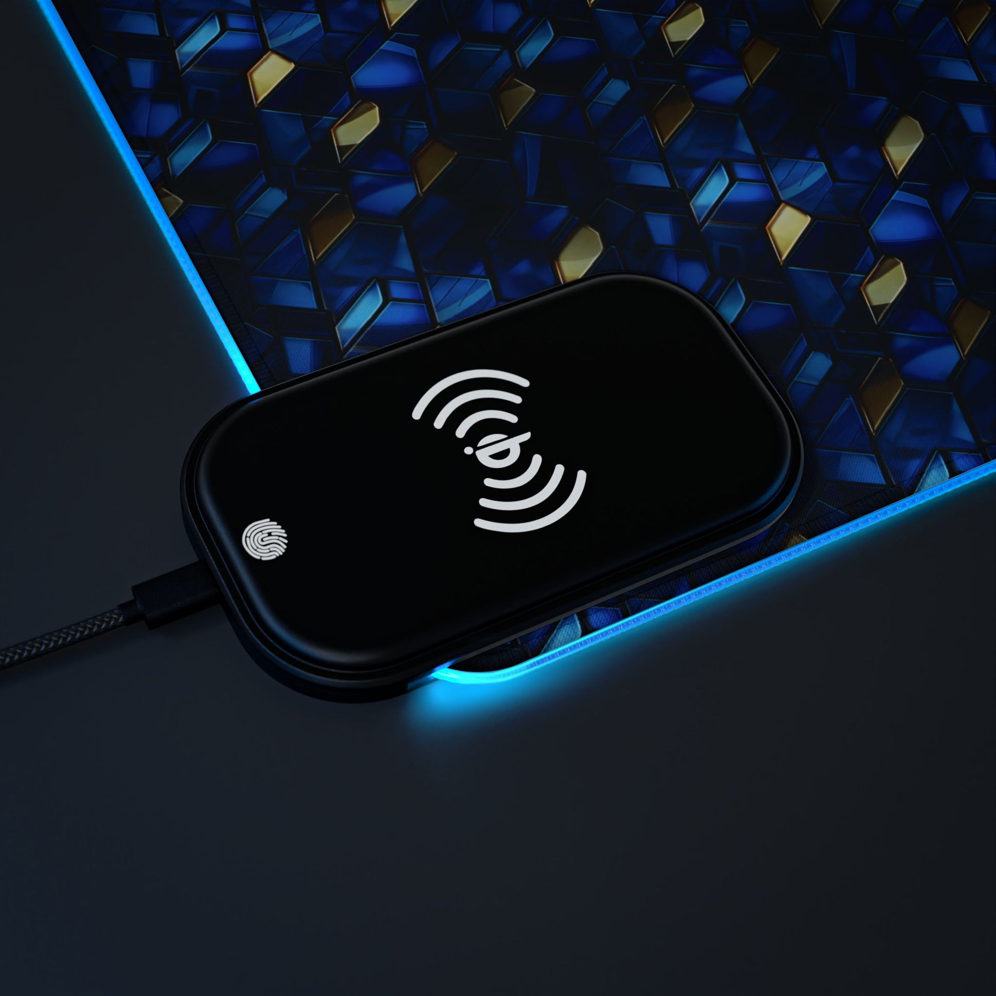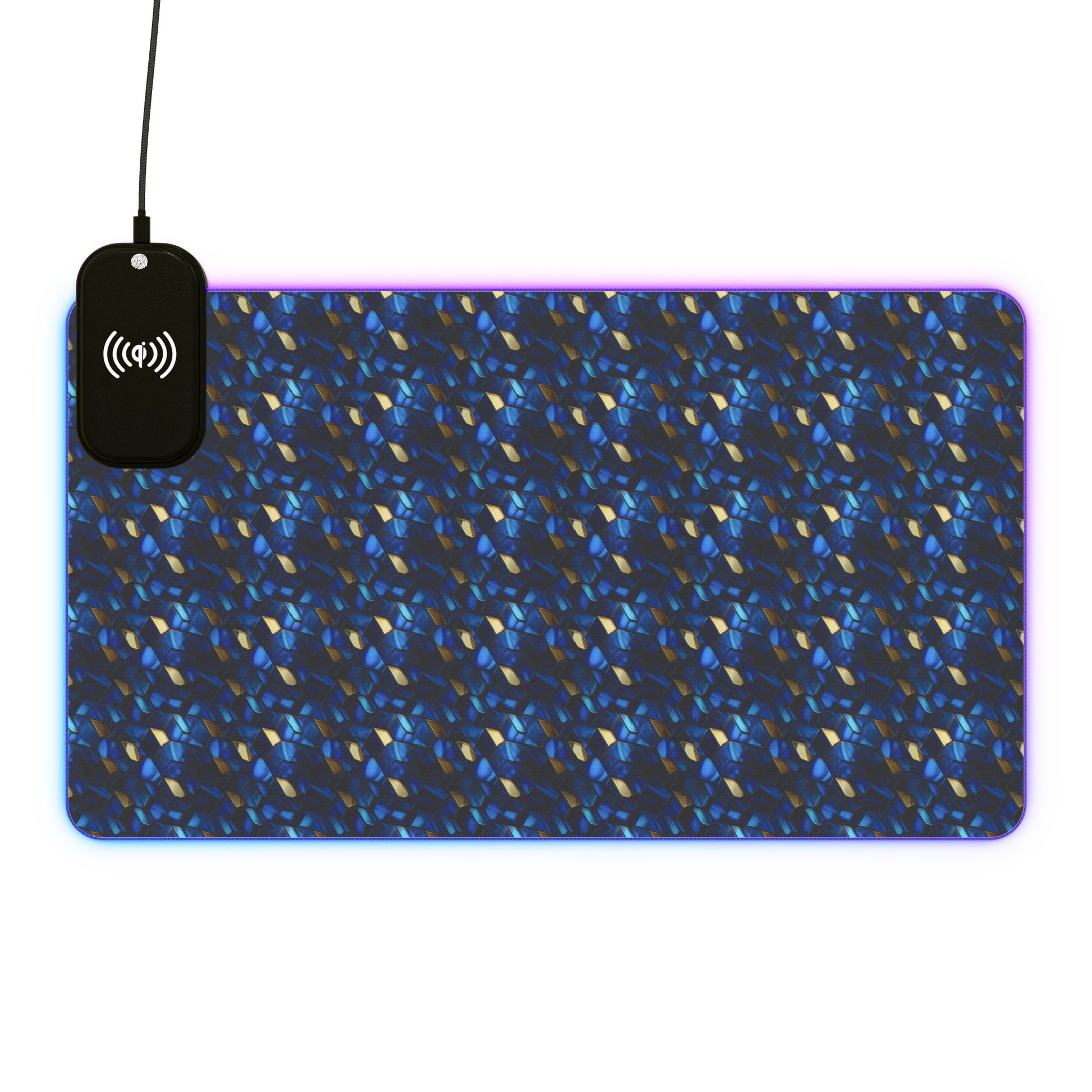 rgb gaming mouse pad with 15w qi charging – blue & gold geometric desk mat