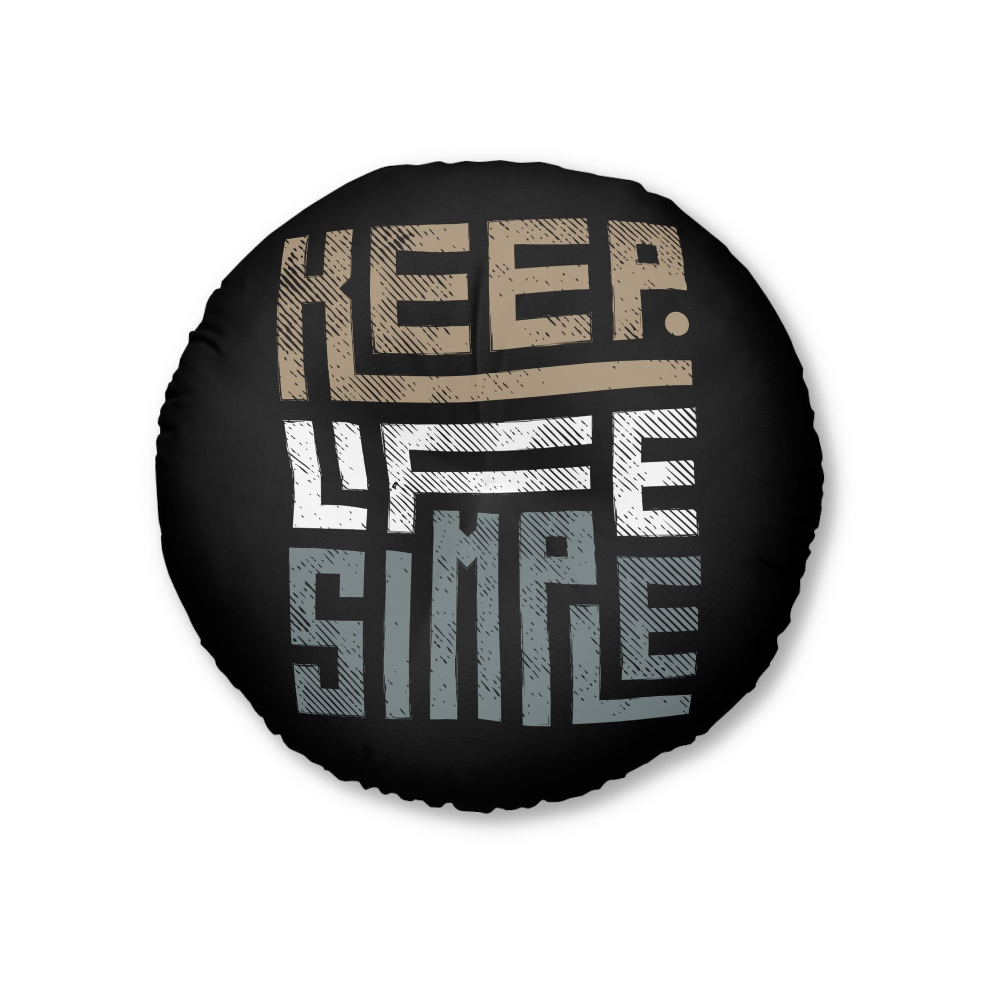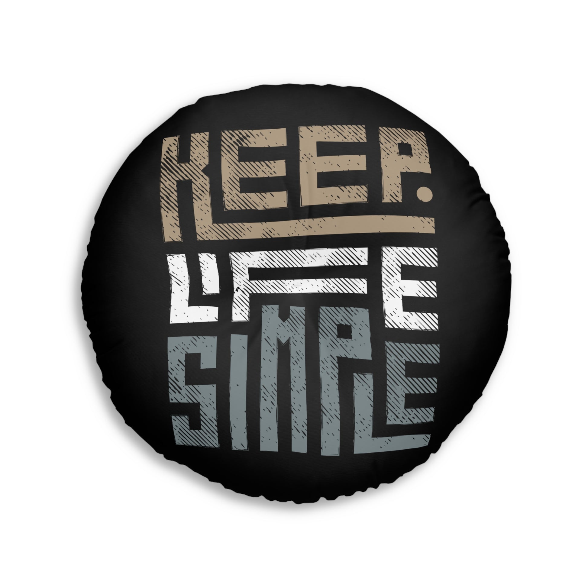 Make floor time irresistibly comfy with this round tufted floor pillow. The black, double-sided floor cushion pairs bold, distressed typography—KEEP. LIFE SIMPLE—with a plush, overstuffed feel for cozy, supportive seating. It’s a striking statement piece that elevates modern, minimalist, boho, or industrial decor. Why you’ll love it: Comfortable support: Thick, overstuffed fill; Striking design: Crisp, center-placed motivational graphic; Versatile and durable: Printed on both sides. Materials: 100% durable polyester body and filling.