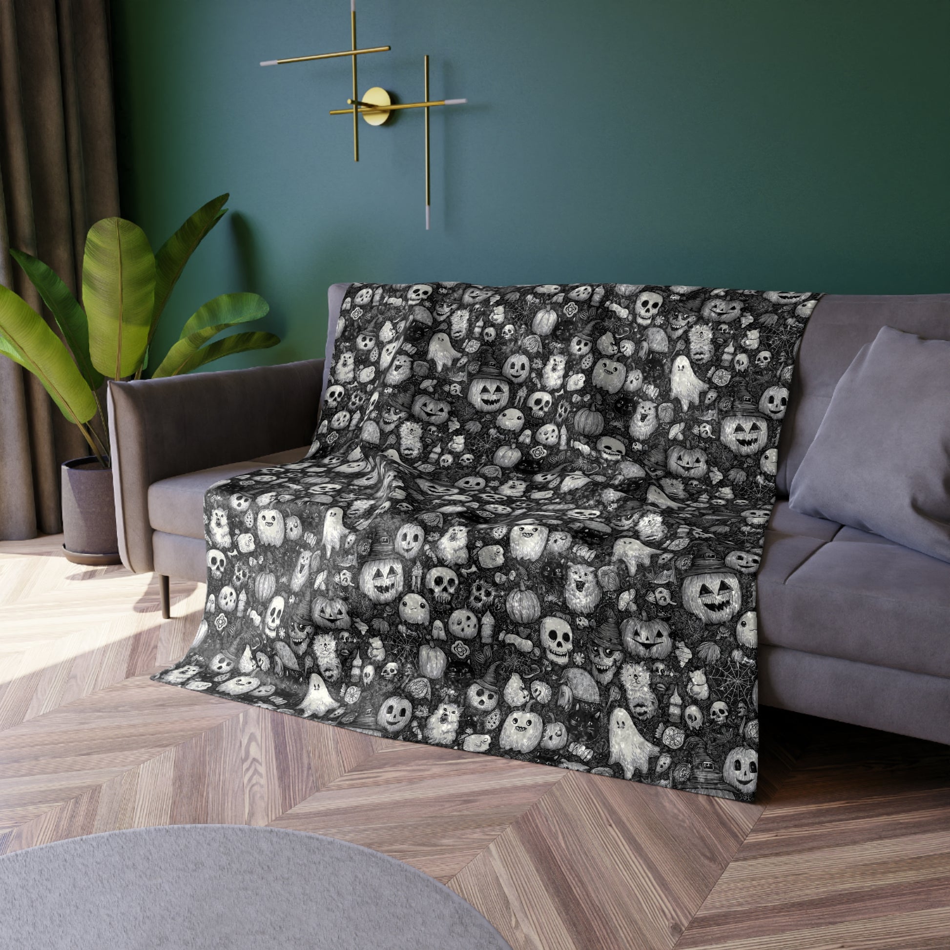 Spooky Crushed Velvet Blanket, Cozy Throw for Halloween, Soft Home Decor, Perfect for Fall, Unique Gift Idea for Horror Fans