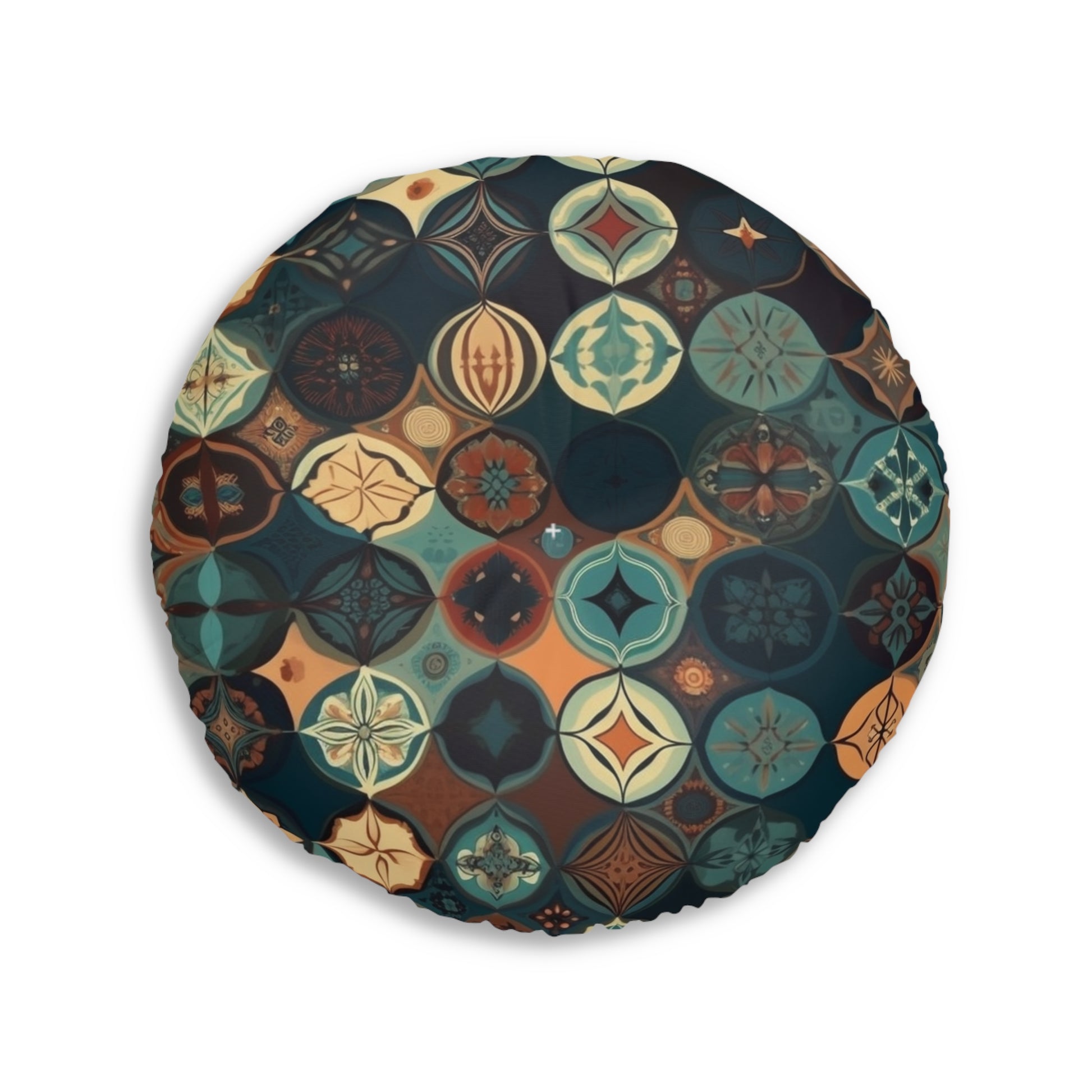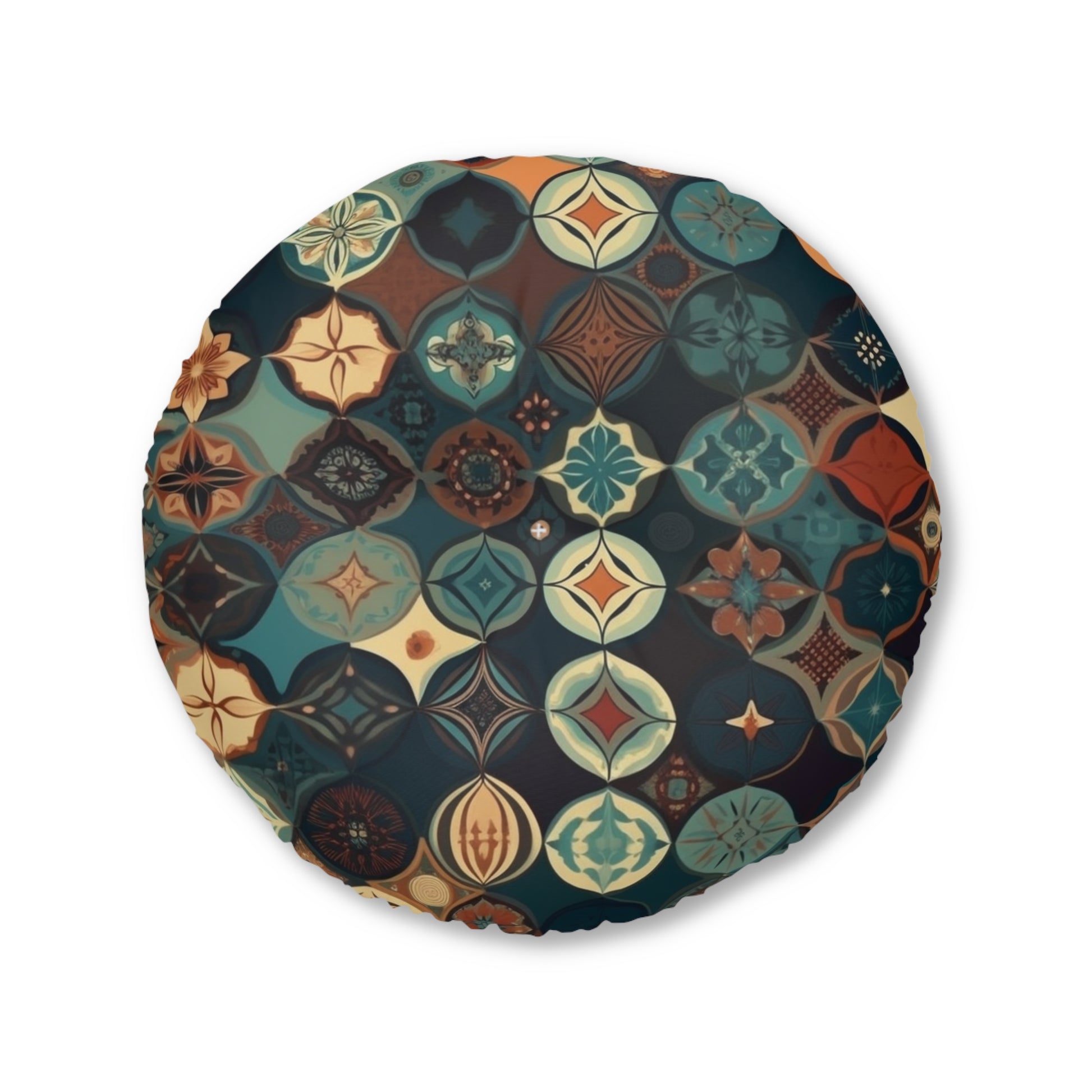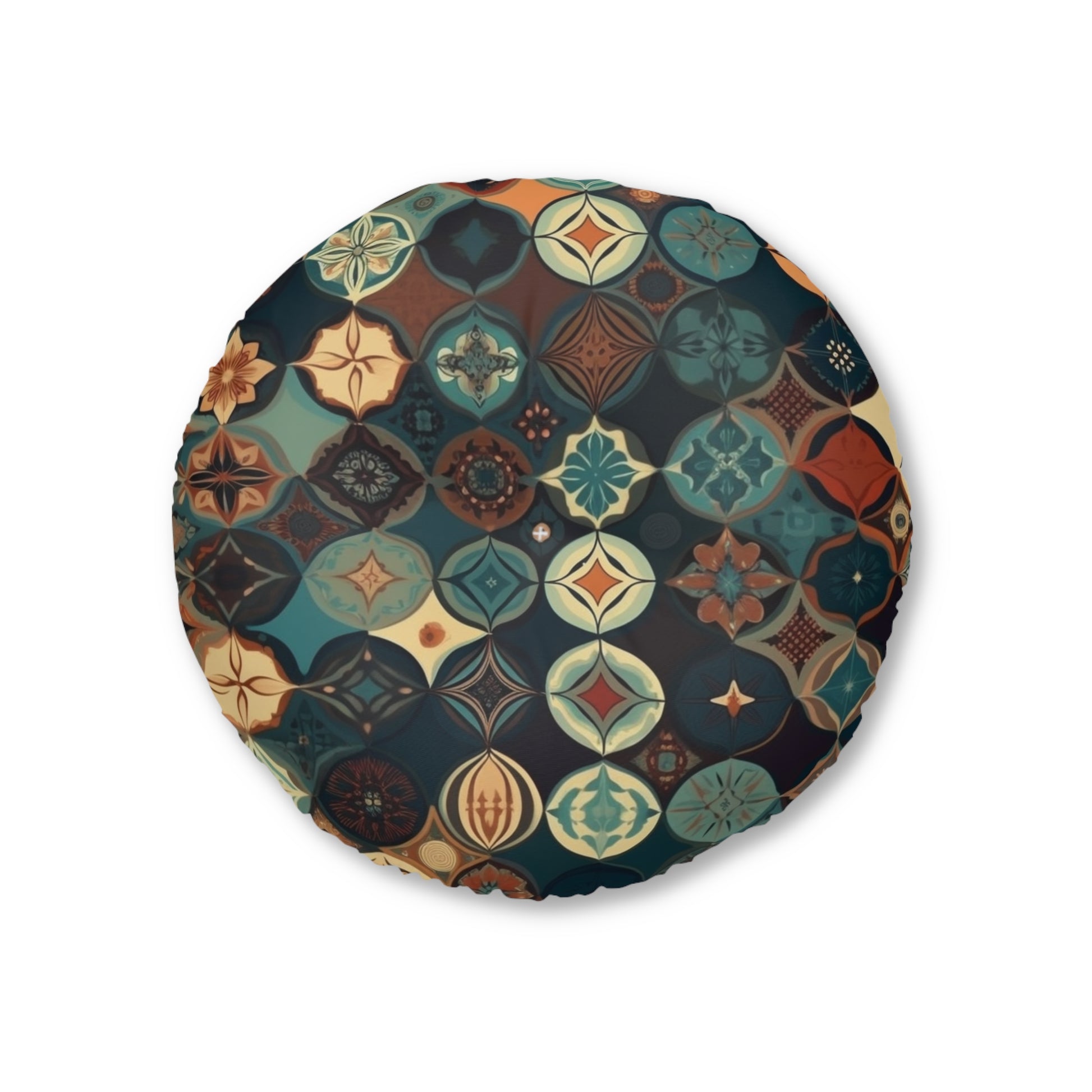 Tufted Round Boho Floor Pillow - Medallion Mosaic Cushion for Cozy Floor Seating