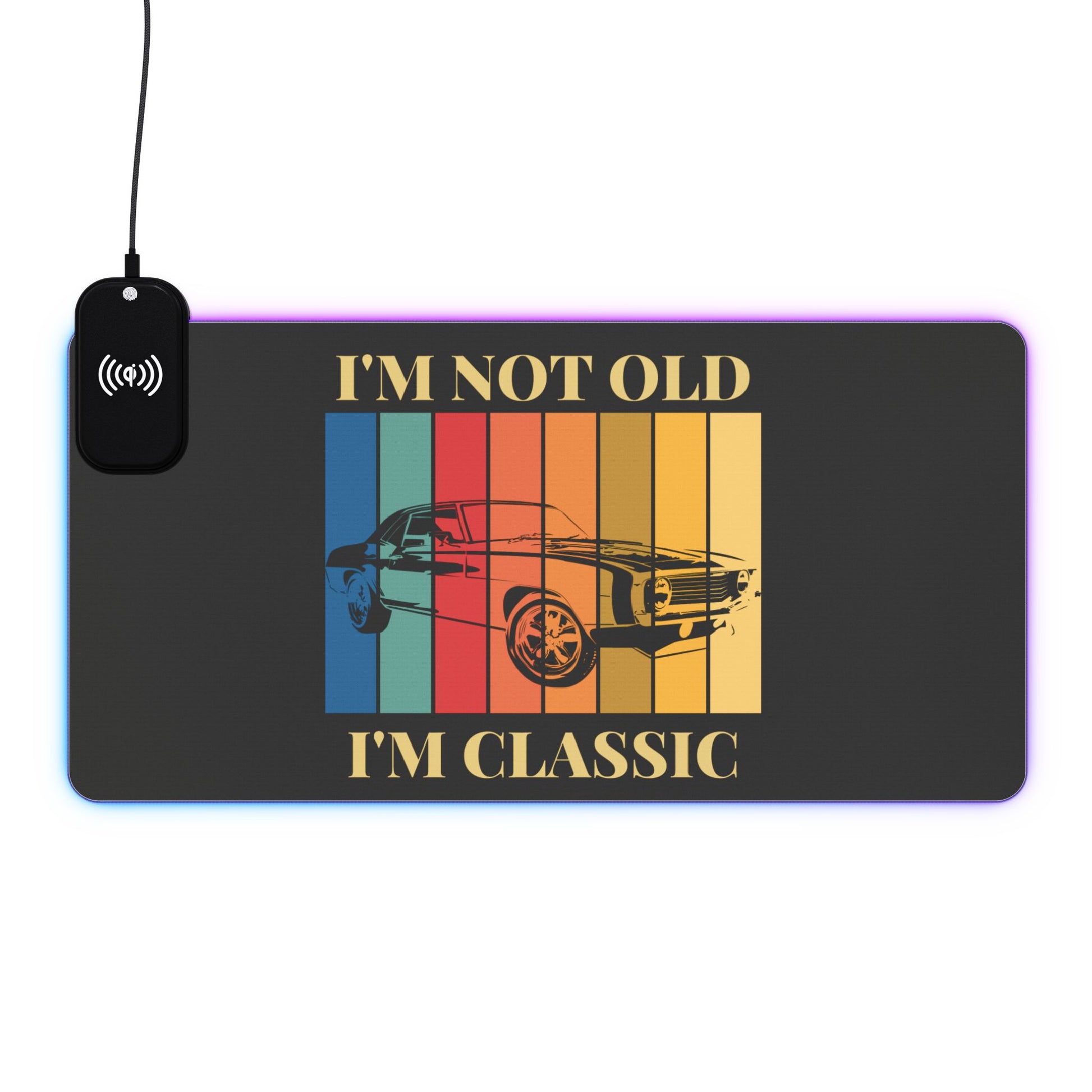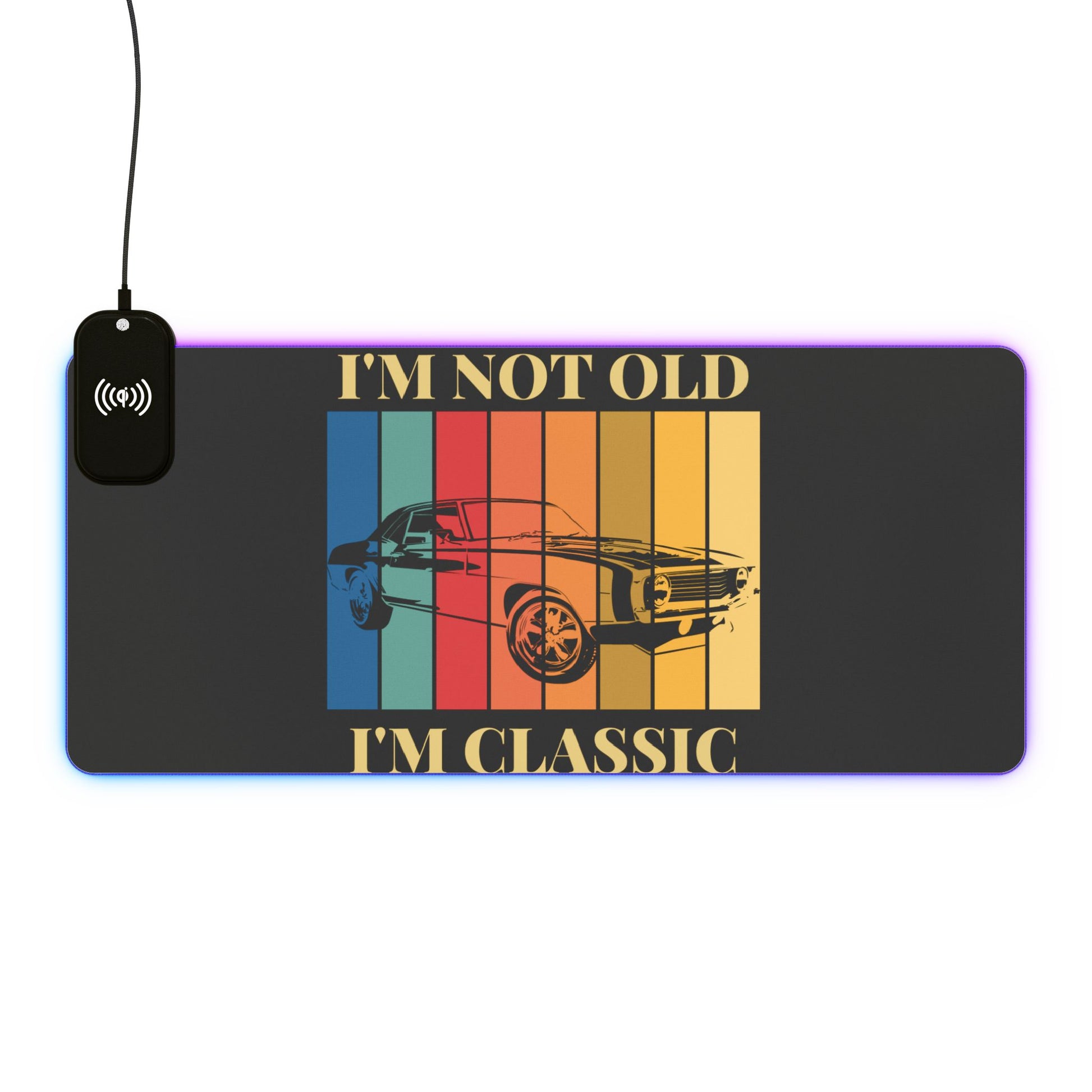 Drive your setup with this Vintage Car RGB Gaming Mouse Pad. Featuring a retro car graphic and the quote "I'm Not Old, I'm Classic," it combines nostalgia with modern tech.